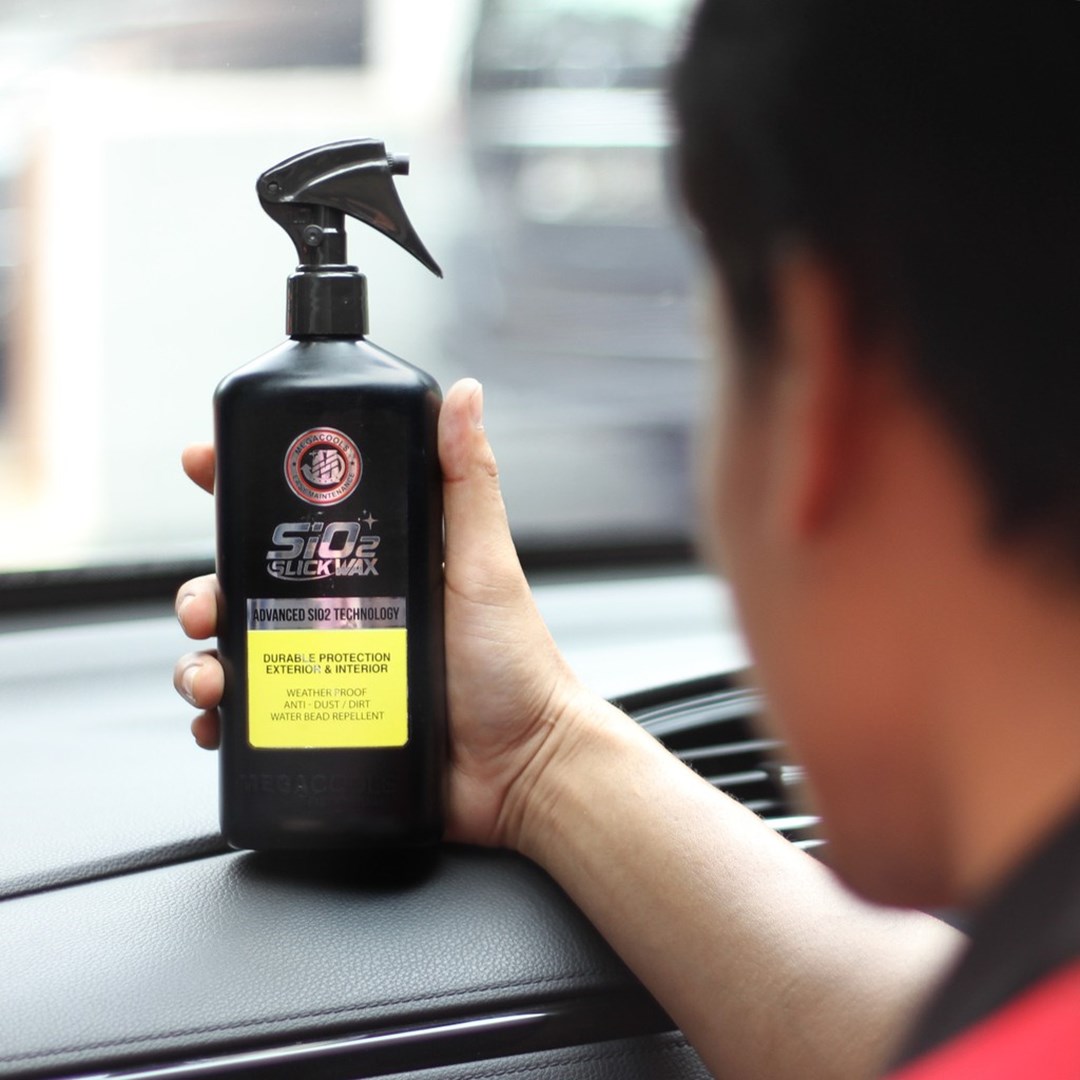 MEGCOOLS SiO2 SLICK WAX dengan New Advance Technology diperkaya dengan SiO2 Silica dispersi sangat efektif melapisi serta melindungi dari goresan minor, tahan cuaca, dirt repellent dan tidak membekas sidik jari. Aman digunakan pada perangkat elektronik seperti, layar TV, laptop, Handphone, serta pada bahan seperti chrome, karet, plastik, kulit dan velg. CARA PAKAI :