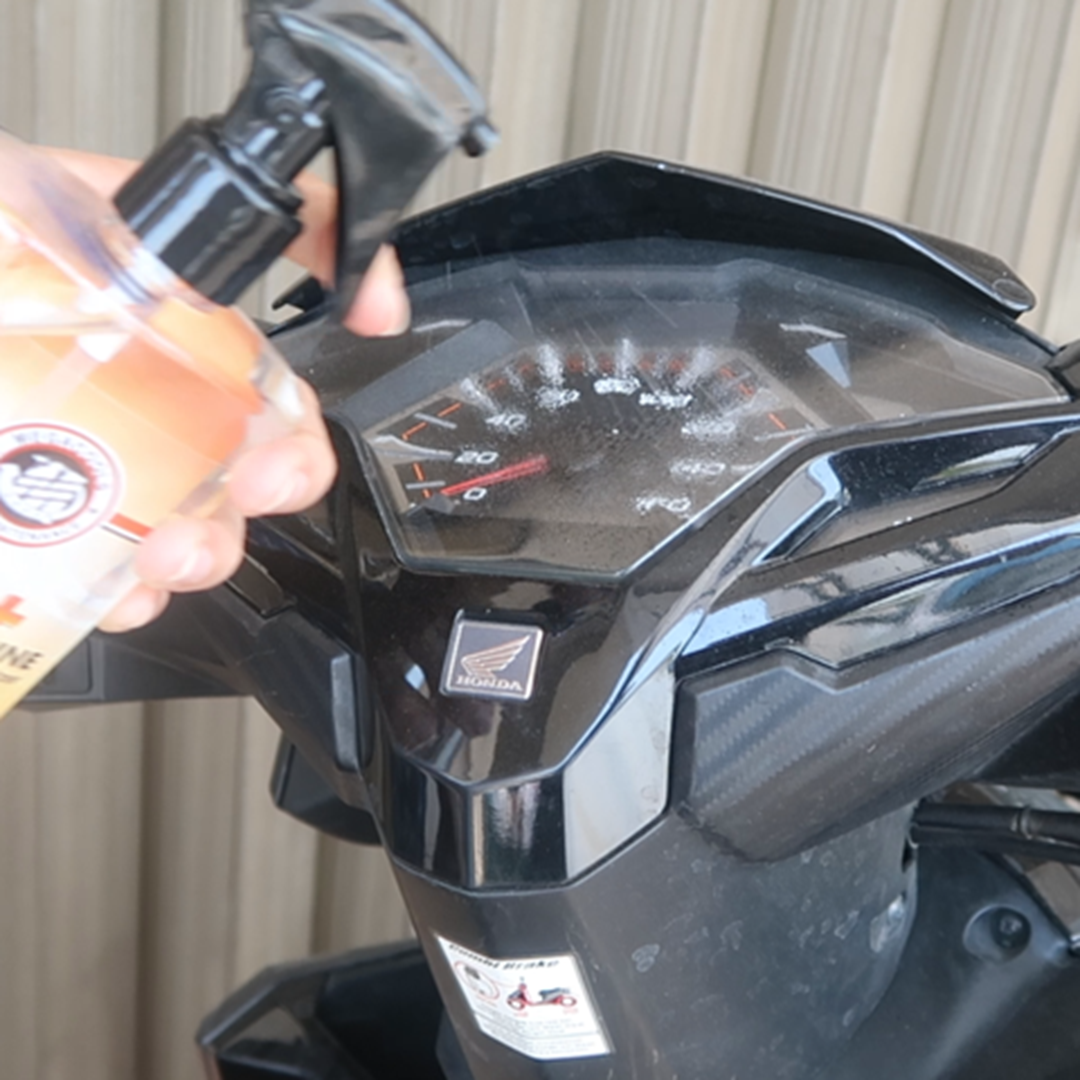 MEGACOOLS MO+SHINE Temuan Revolusioner kaya akan kandungan kelembaban & Kilap indah yang dapat memberikan perlindungan total dari kering, kusam, retak pada Dashboard, Door Trim, Kulit Jok, Body Motor, Ban. Tahan terhadap sinar UV, tidak lengket dan debu tidak menempel.