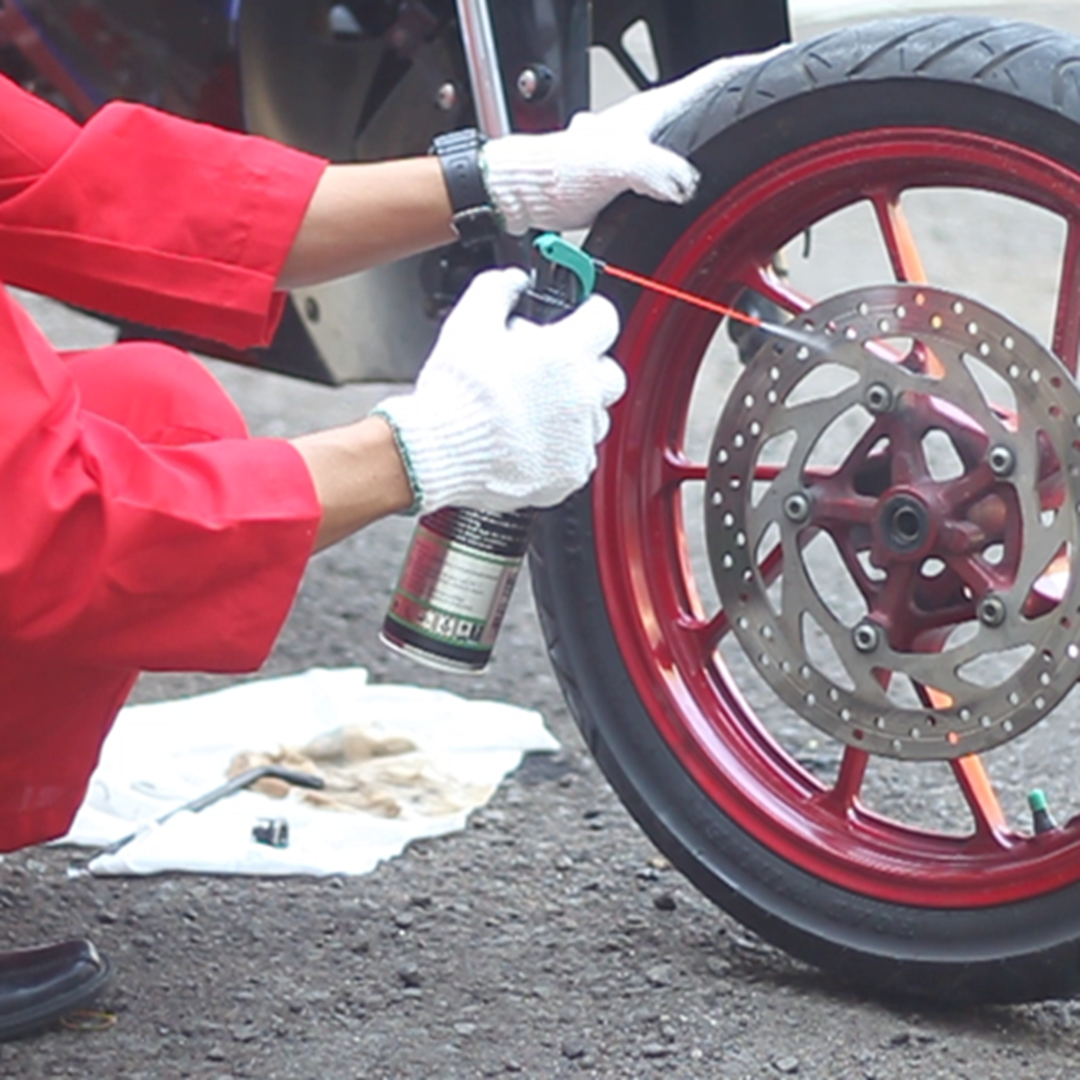 (3). Semprotkan juga pada cakram roda dan disc pad sehingga kotoran hilang.